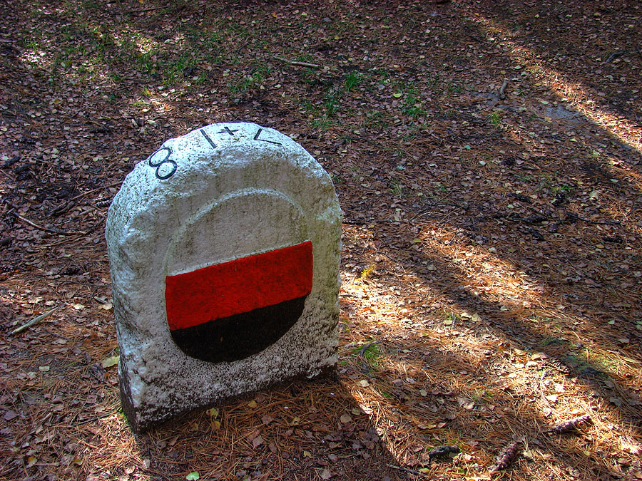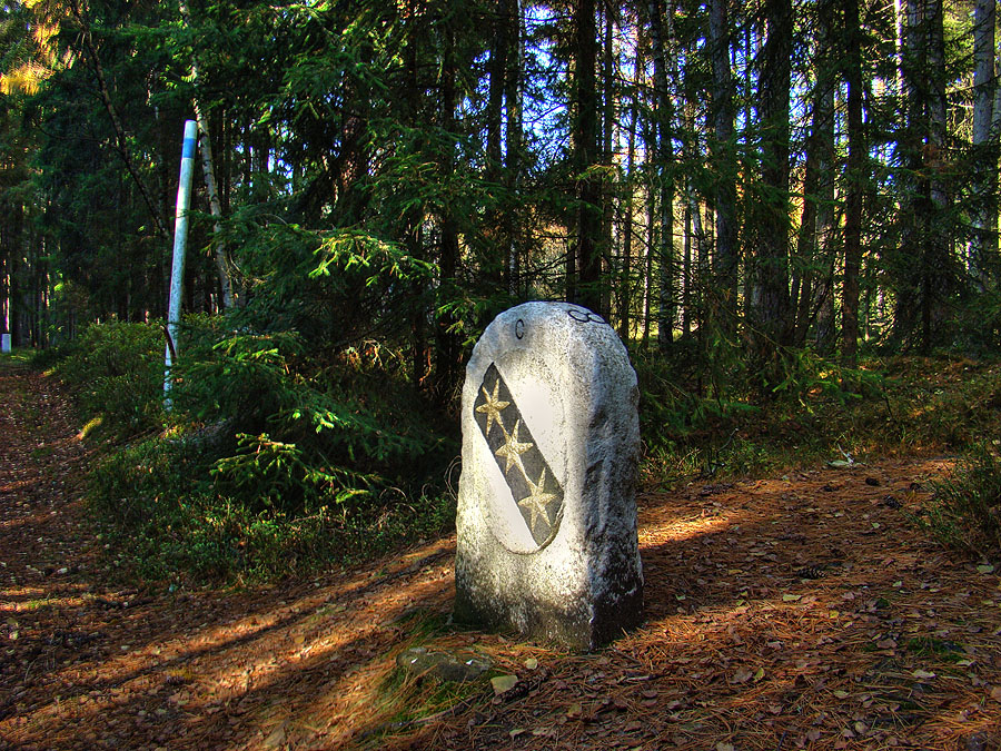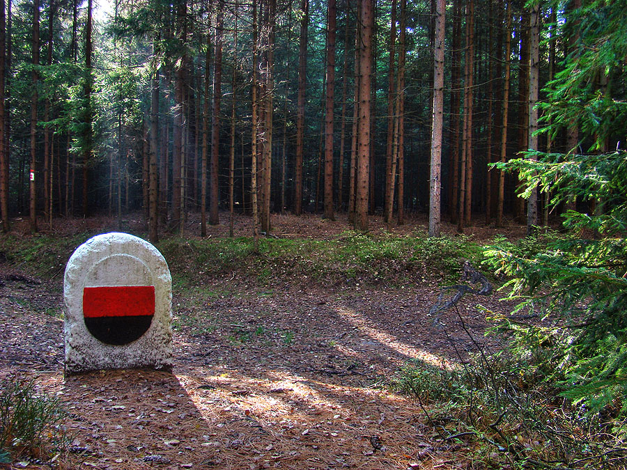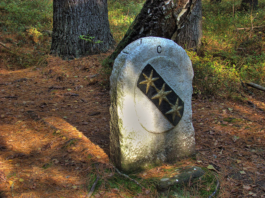 barvy vládního okresu Horní Franky (Bavorsko) kámen na bývalé hranici Rakousko-Uherska a Německého císařství hraniční kámen z roku 1718 hraniční kámen z roku 1718